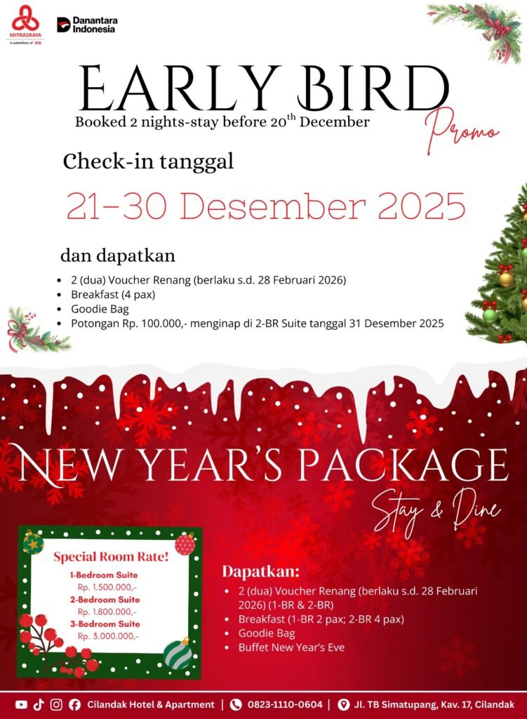 Pelayanan memuaskan serta fasilitas akomodasi yang memadai akan membuat Anda nyaman berada di Apartemen Cilandak. Pusat perbelanjaan, kampung kuliner, dan sport center adalah fasilitas yang wajib dicoba ketika menginap di apartemen cilandak. Tersedia kolam renang untuk Anda bersantai sendiri maupun bersama teman dan keluarga. Resepsionis siap 24 jam untuk melayani proses check-in check-out dan kebutuhan Anda yang lain.